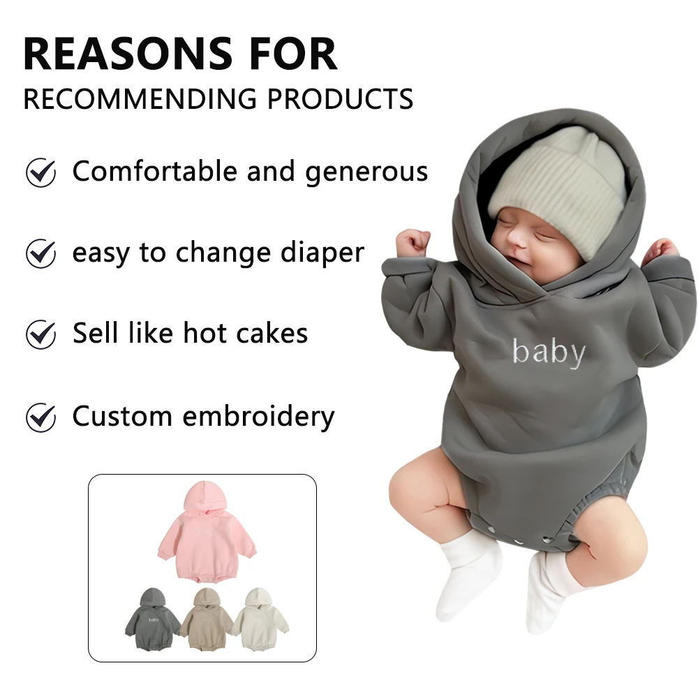 Hot Sale Infant Jumpsuit Long Sleeve Autumn and Winter Hoodie Cotton Baby Plush Sweatshirt Romper Toddler Cloths